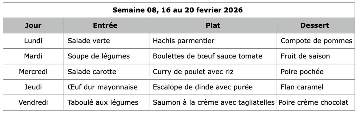 Déjeuner du lundi au vendredi de 12h à 14h.